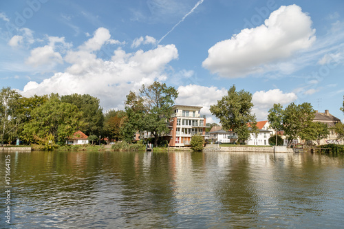Wohnungen Am Fluss In Bernburg Stockfotos Und Lizenzfreie Bilder